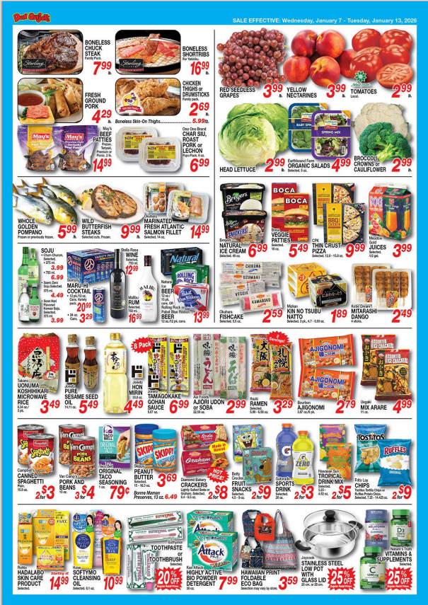 The Don Quijote Weekly Ad offers fresh fruits, vegetables, meats, and seafood. You’ll also find pantry essentials like rice, noodles, and sauces—all at great prices.